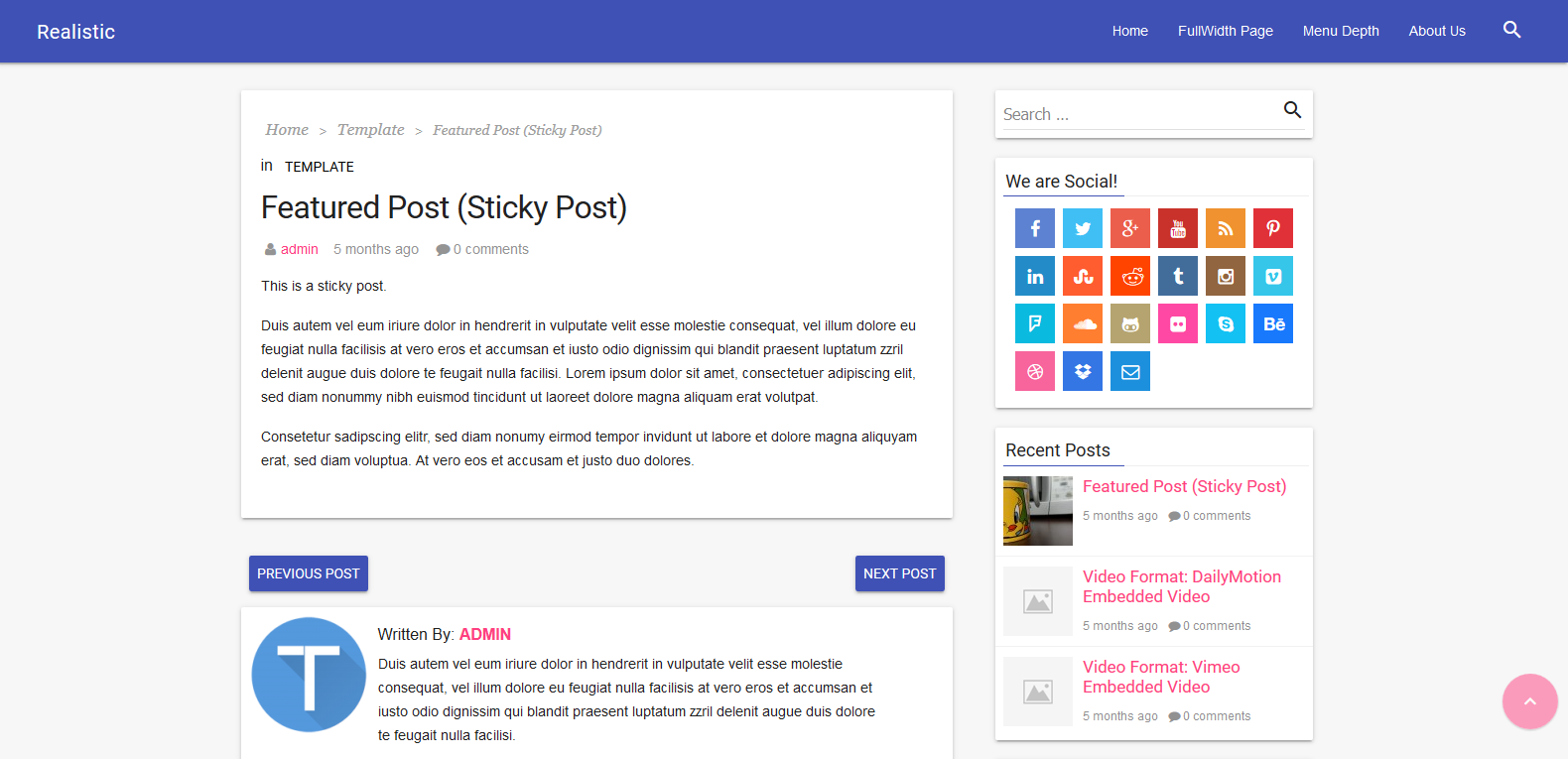WordPress两栏博客主题:Realistic