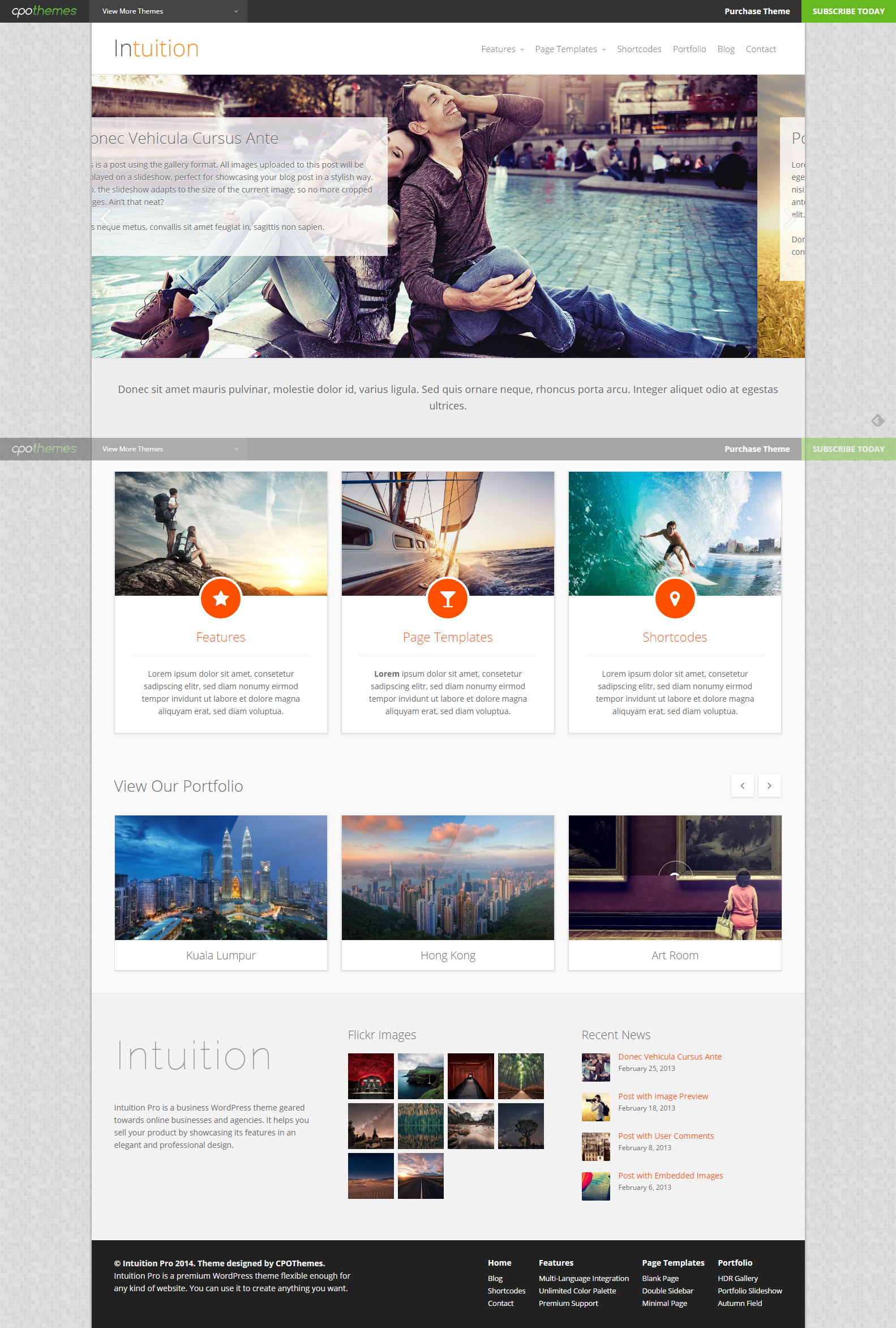 Intuition是一款可以有多种用途的WordPress主题,可以用来做博客网站,但其实,做外贸网站也可以,做企业网站,提供产品,提供服务类的,也可以的,是一款多功能的WordPress主题。