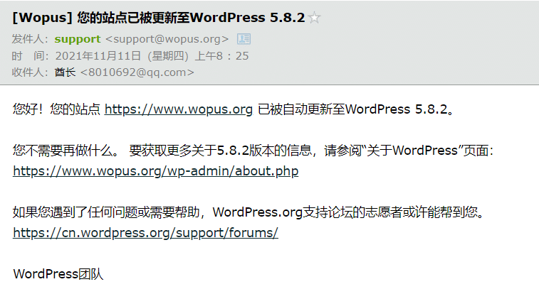 早上收到网站发的邮件,提示网站已经升级到WordPress 5.8.2,赶紧上WordPress官网看看具体情况。